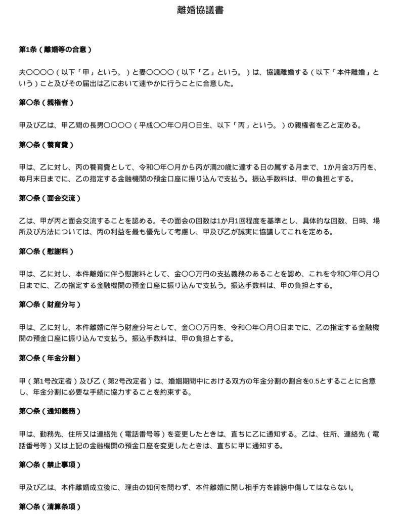 それでは、ここで、離婚協議書のサンプルをお示しします。無料でダウンロードできますので、自分で離婚協議書の作成にチャレンジしてみたい方はご活用ください。